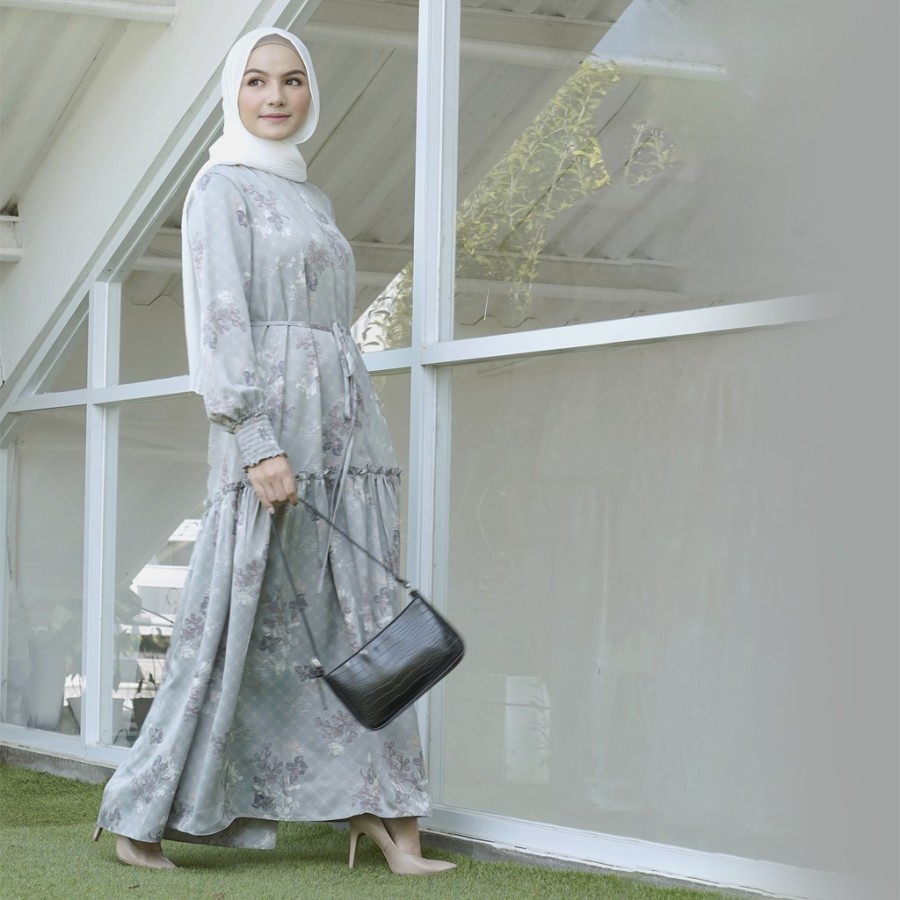Dress printing yang sangat cantik dilengkapi dengan kerut pada bagian tangan,