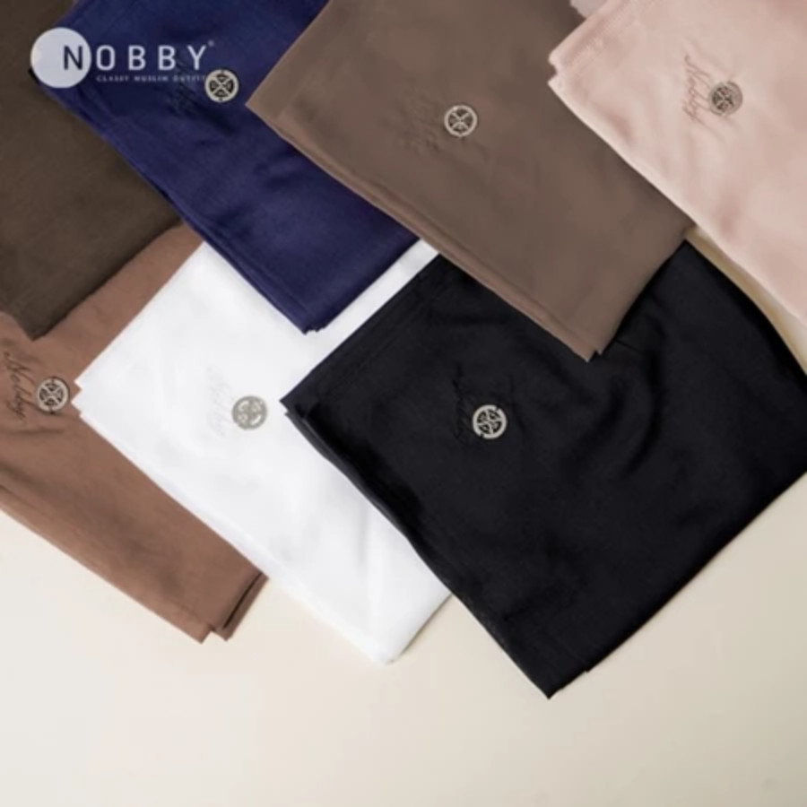 Nobby Umaiza Scarf 1 - Hijab segiempat polos dengan bahan lembut yang nyaman digunakan, mudah dibentuk dan dilengkapi dengan finishing lasser cut serta gold plate dan bordir Nobby pada bagian ujung hijab