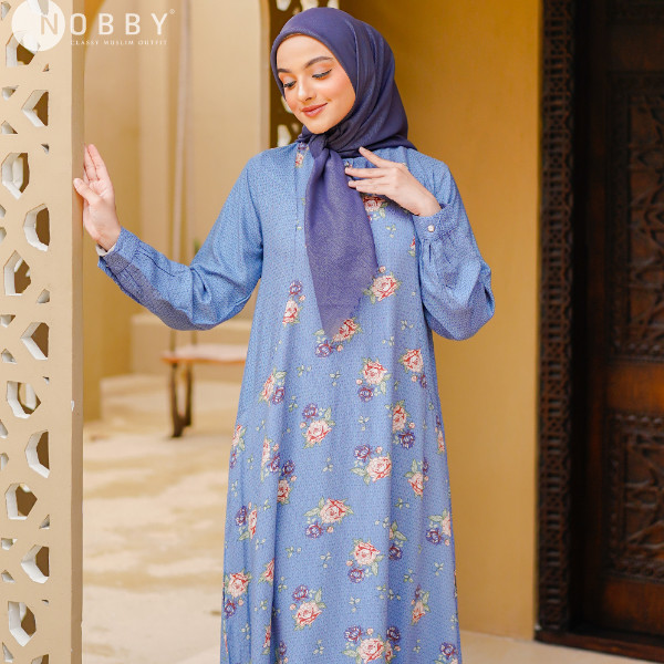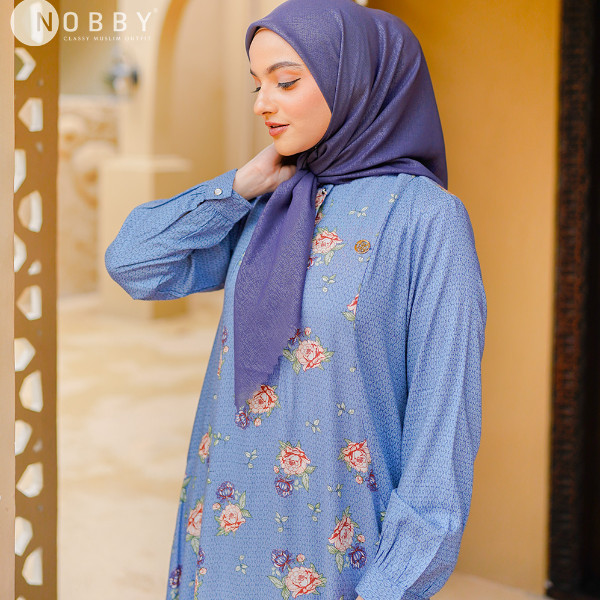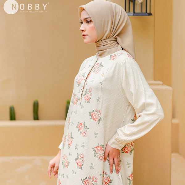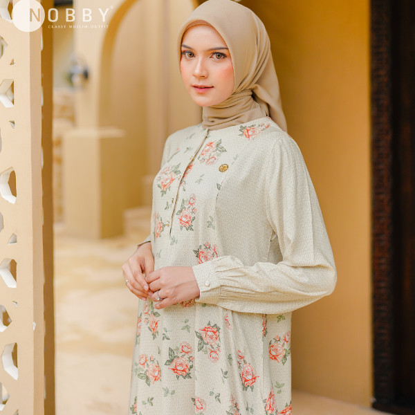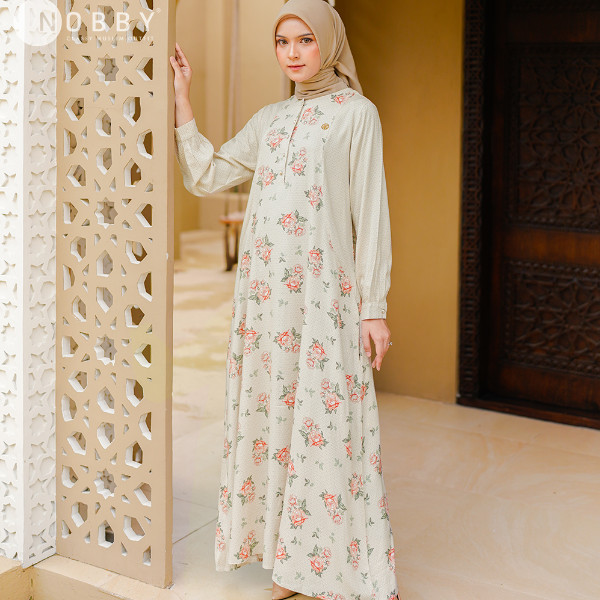 Tyana dress - Gamis motif floral monogram yang berbahan dasar rayon jacquart membuat tunik ini nyaman dan sejuk ketika dipakai dan tentunya tidak menerawang. Dress ini busui karena terdapat kancing di bagian depan baju. Cocok dipakai di acara-acara formal dan acara penting lainnya.