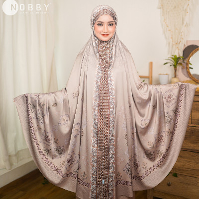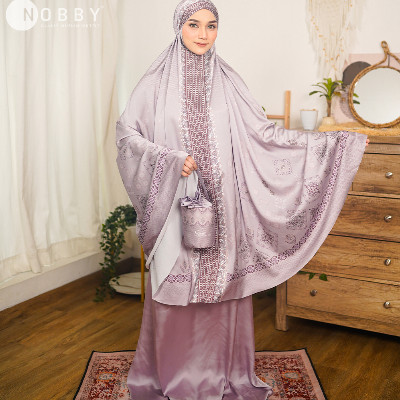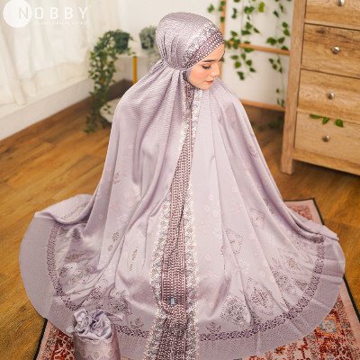 Mukena Exclusive dengan desain motif mengikuti bentuk mukena.