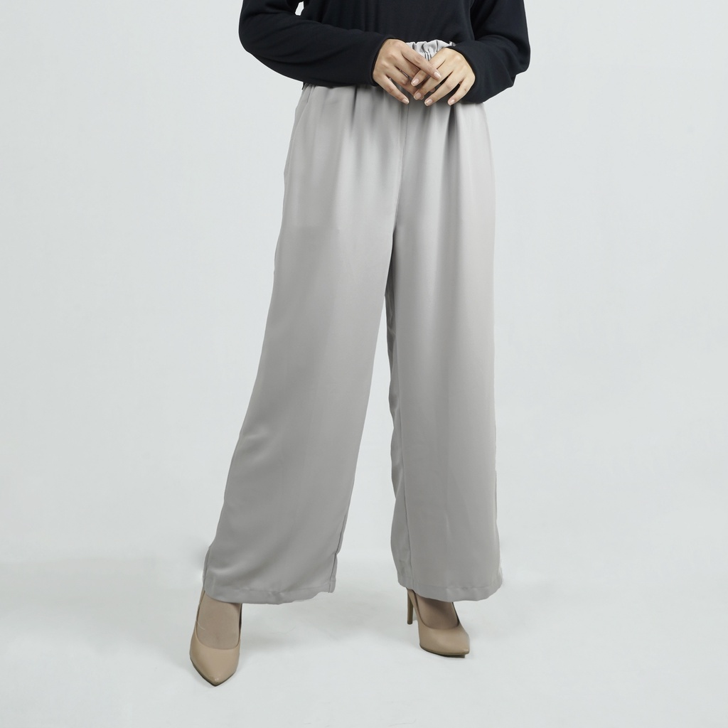Kulot dengan detail kerut pada bagian pinggang dan terdapat saku pada kanan dan kiri.