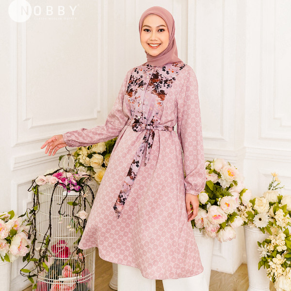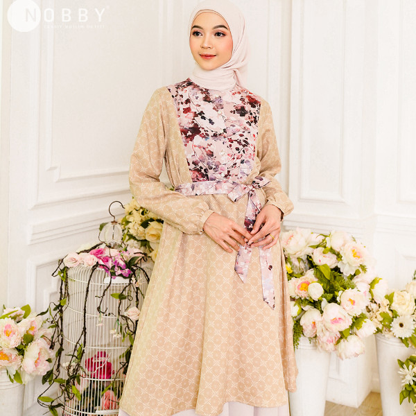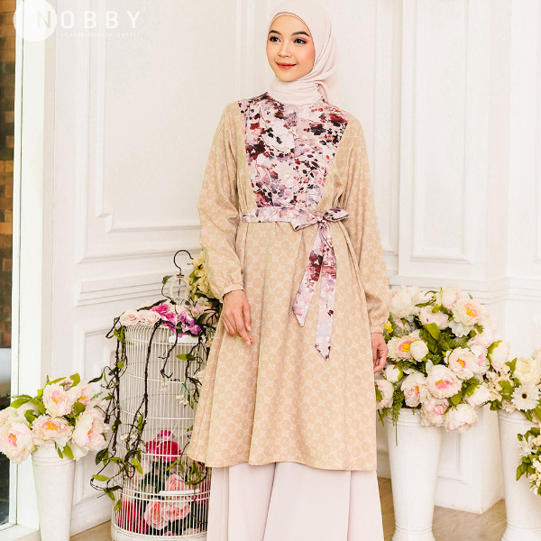 Ayesha tunik - atasan tunik warnita dengan motif monogram flower. Desain motif monogram di padukan dengan motif water colour digital. Bahan tidak menerawang dan busui friendly. Terdapat belt yang bisa di adjust dan bisa di lepas pasang sesuai dengan mood si pemakainya.